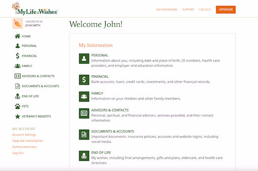 3. Provides in-depth prompts for end-of-life planning. We found ML&W was one of the most thorough of all platforms when it came to the information it requests from users. There are prompts for everything from healthcare providers to the food you feed your pets. All prompts are optional, so you don’t need to fill out the information that you don’t want to share or that isn’t relevant to you. If you’re someone who’s overwhelmed at the thought of end-of-life planning, ML&W provides a thoughtful framework where it’s easy to get started.